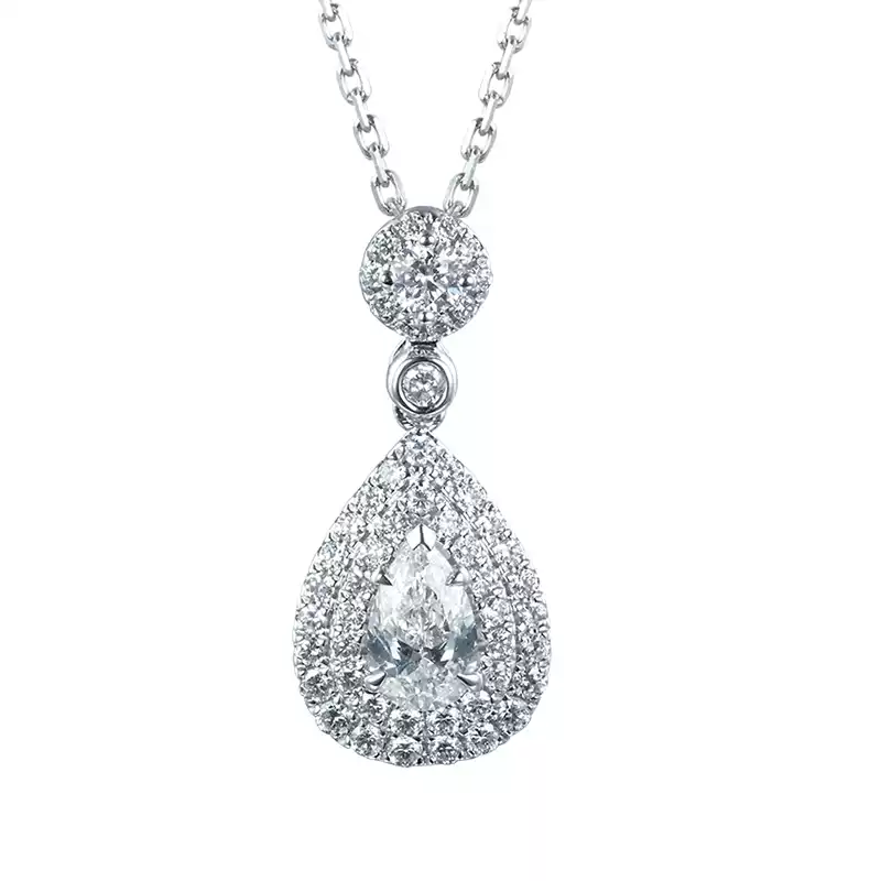 钻石项链女18k金锁骨链一克拉玫瑰金砖石彩金白金30分水滴吊坠