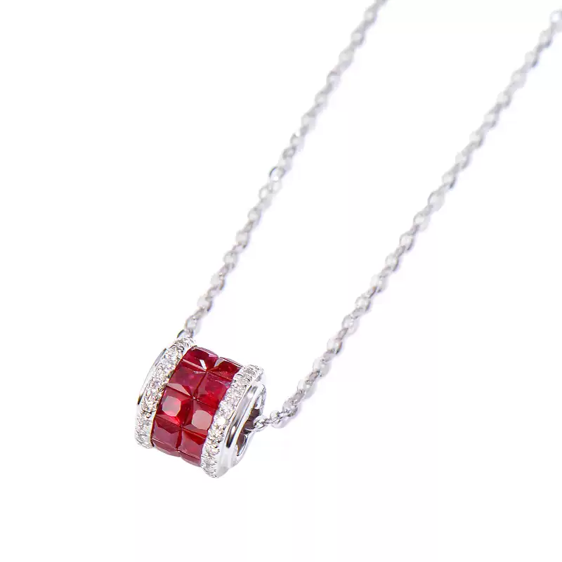 天然鸽血红红宝石项链 18K玫瑰金时尚百搭钻石吊坠锁骨链女 正 品