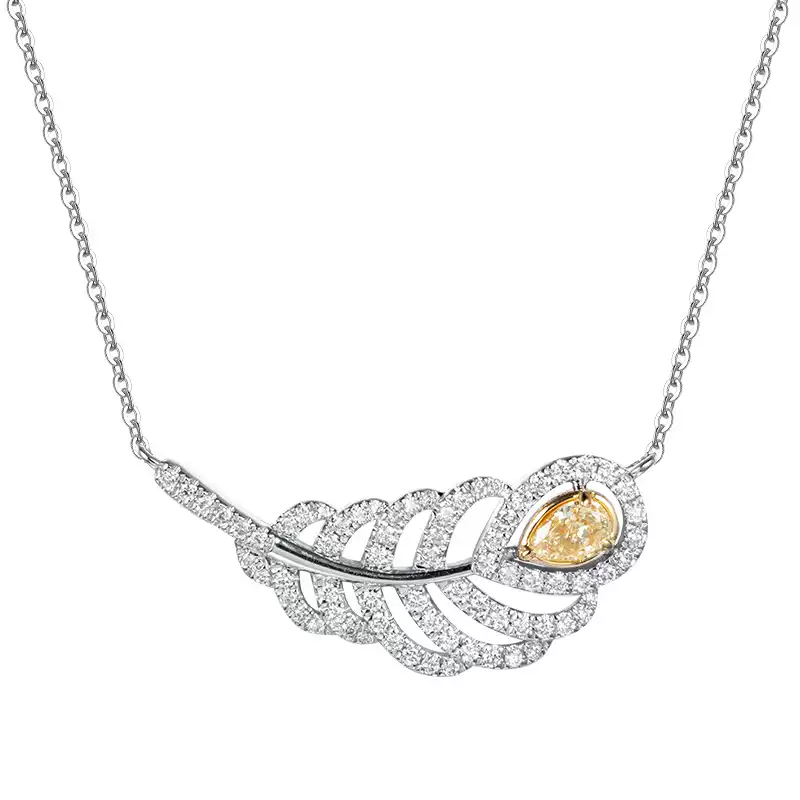 廖夫人珠宝 18K金黄钻项链女天然钻石砖石吊坠羽毛真钻锁骨链定制