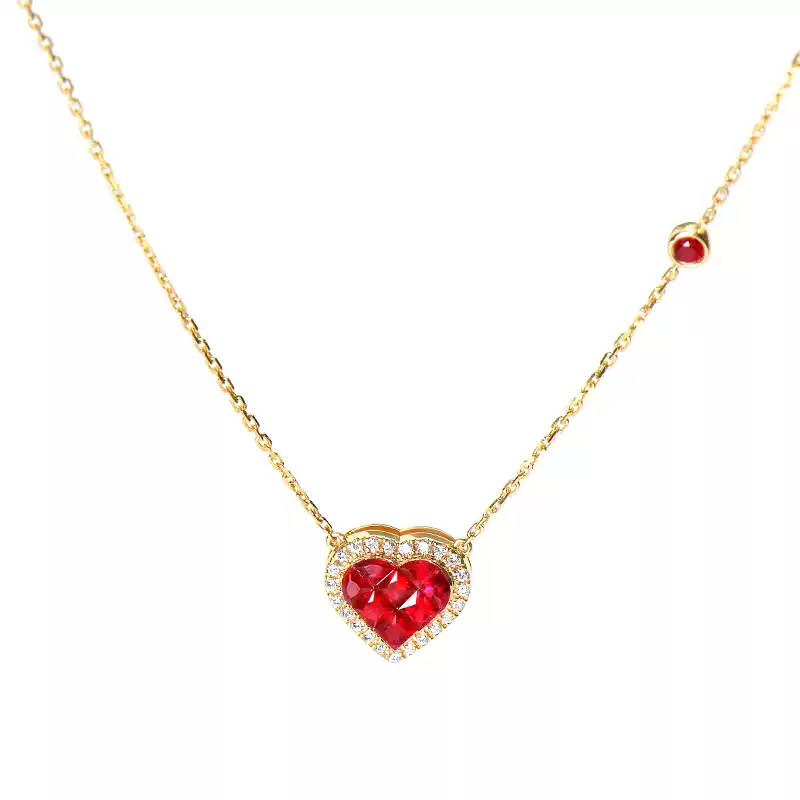 新星彩宝 18k天然鸽血红宝石项链 甜美心形钻石吊坠女锁骨链定制