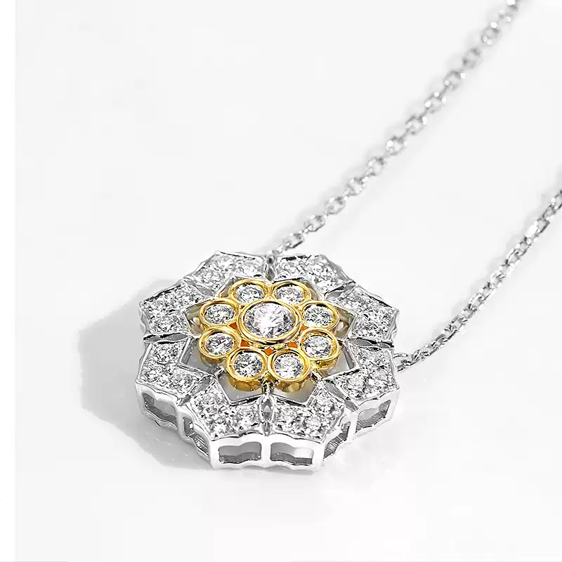 新星彩宝 18K金黄白分色雪花钻石项链 精致百搭款真钻吊坠女