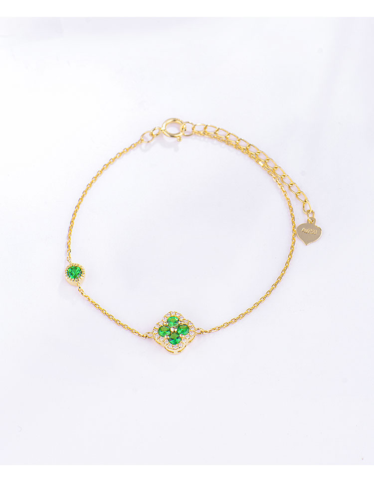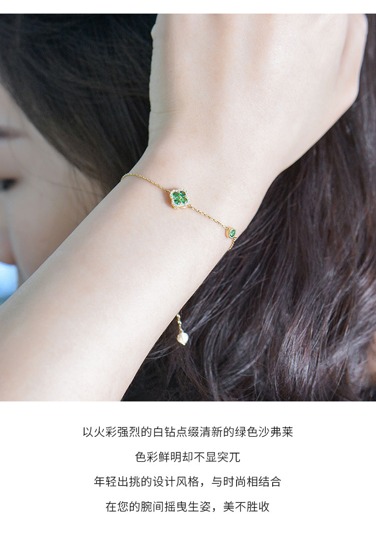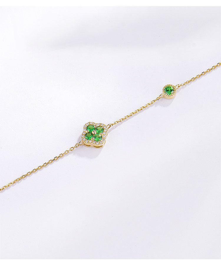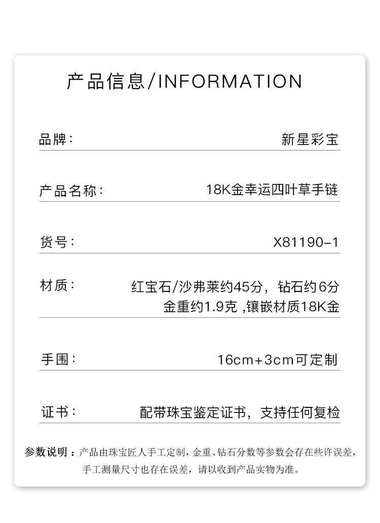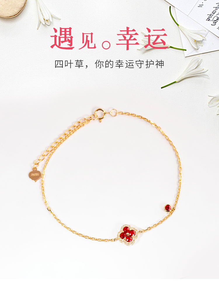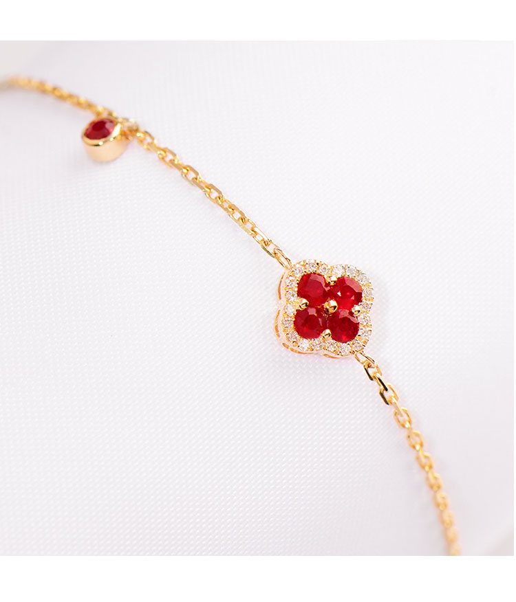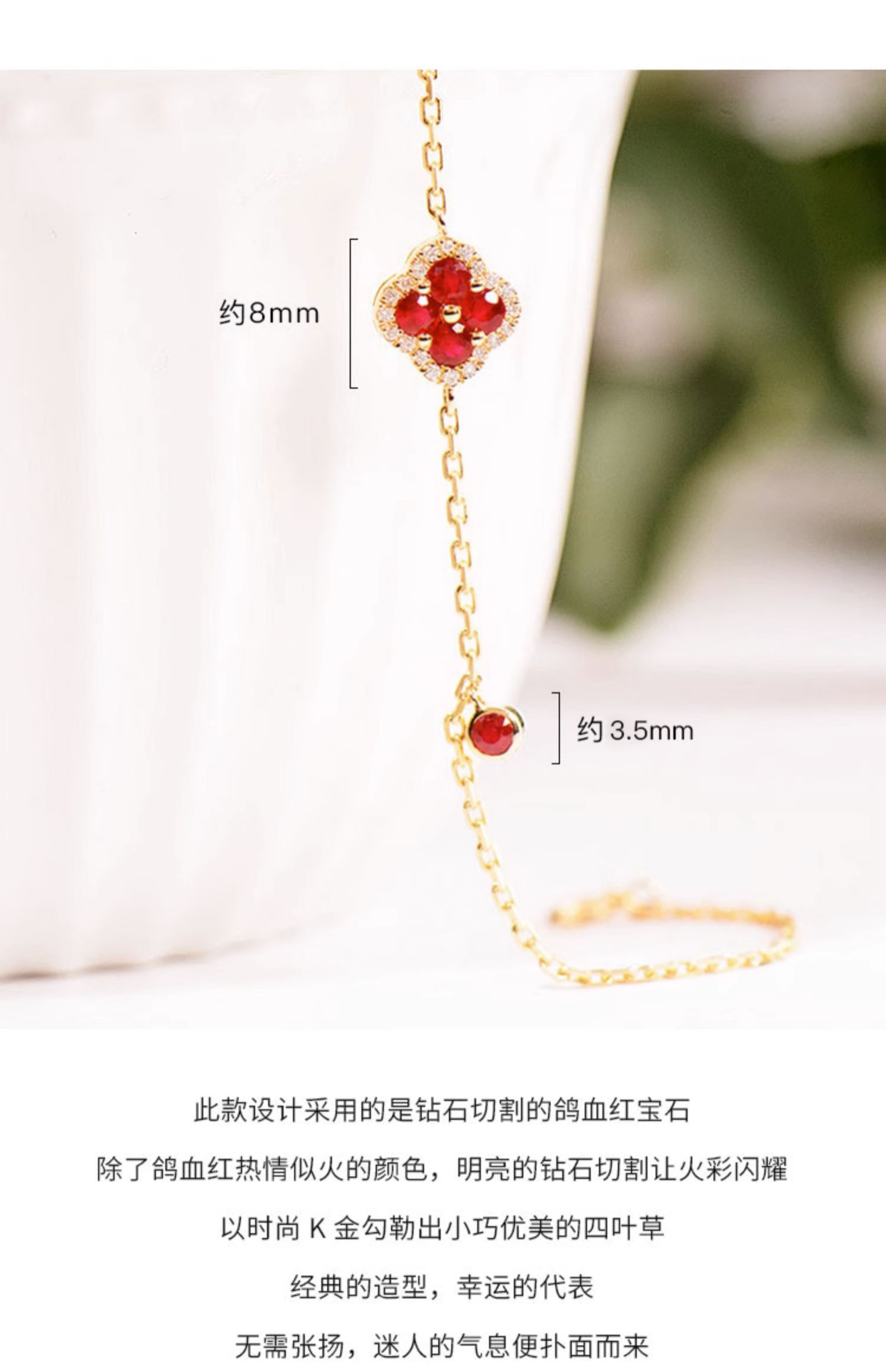 天然鸽血红红宝石手链女 18K黄金小清新四叶草宝石钻石手链
