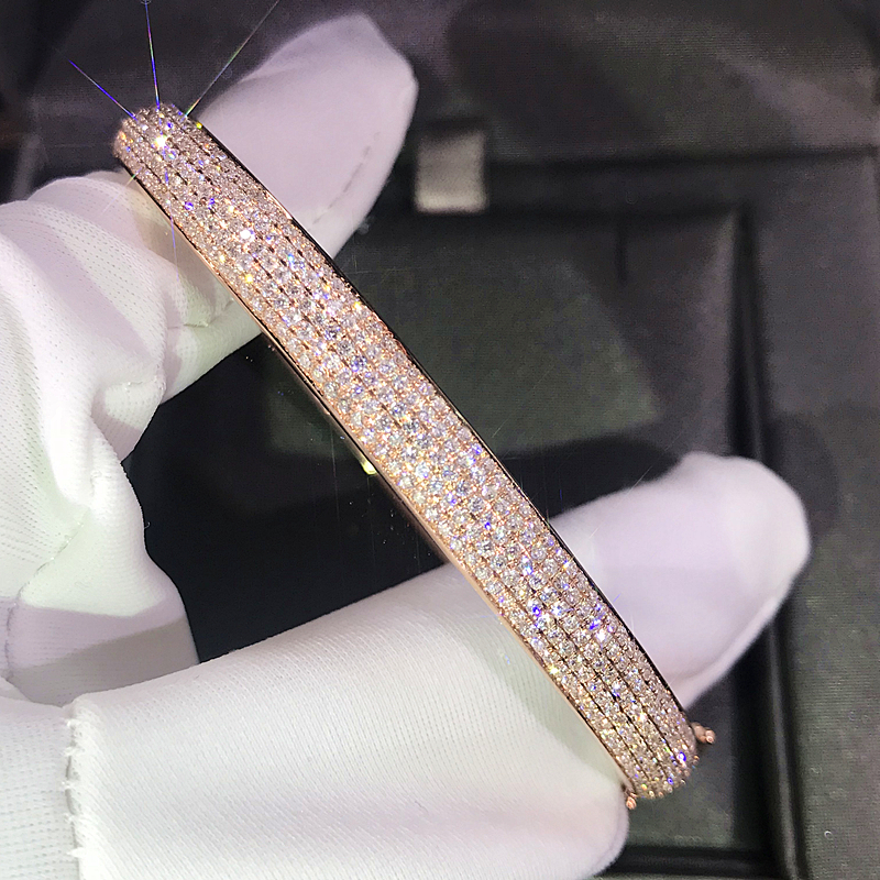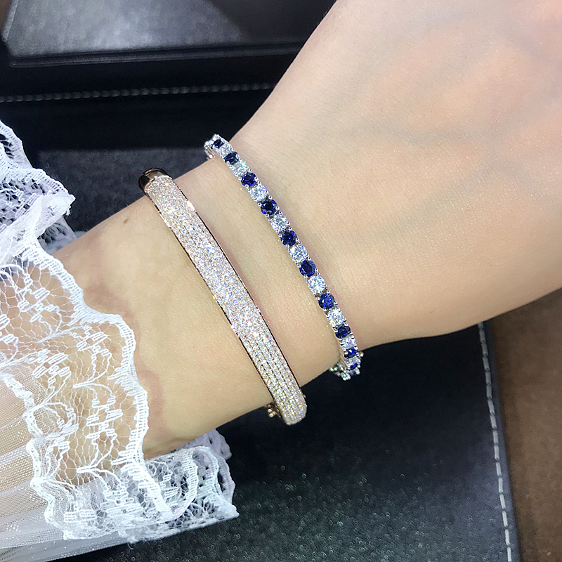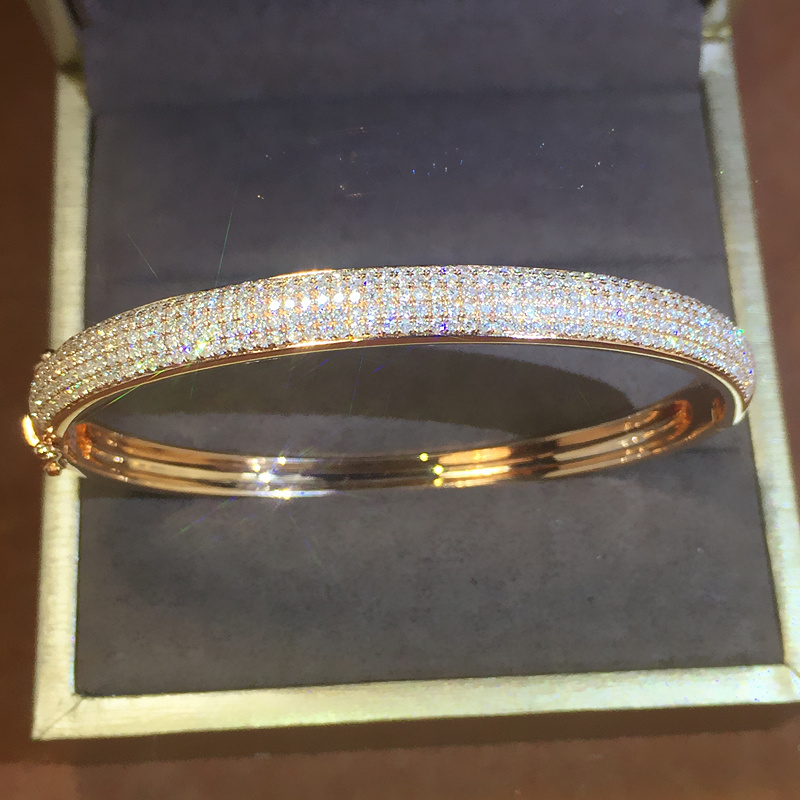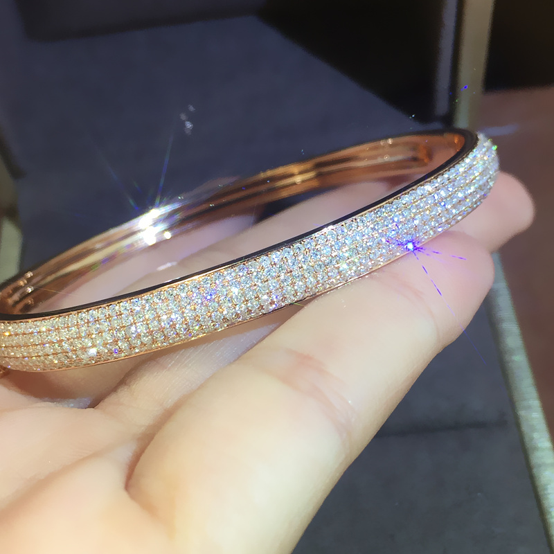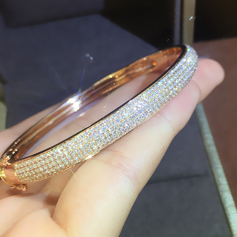 18K金钻石手镯女镶钻满钻玫瑰白金铂金彩金冷淡风情侣正品定制5排