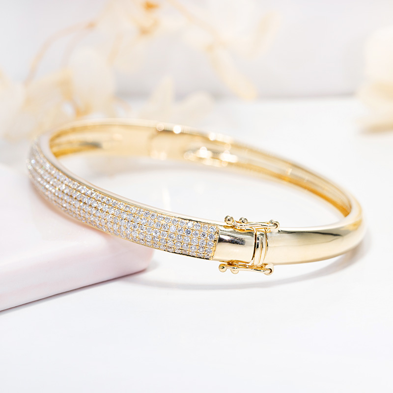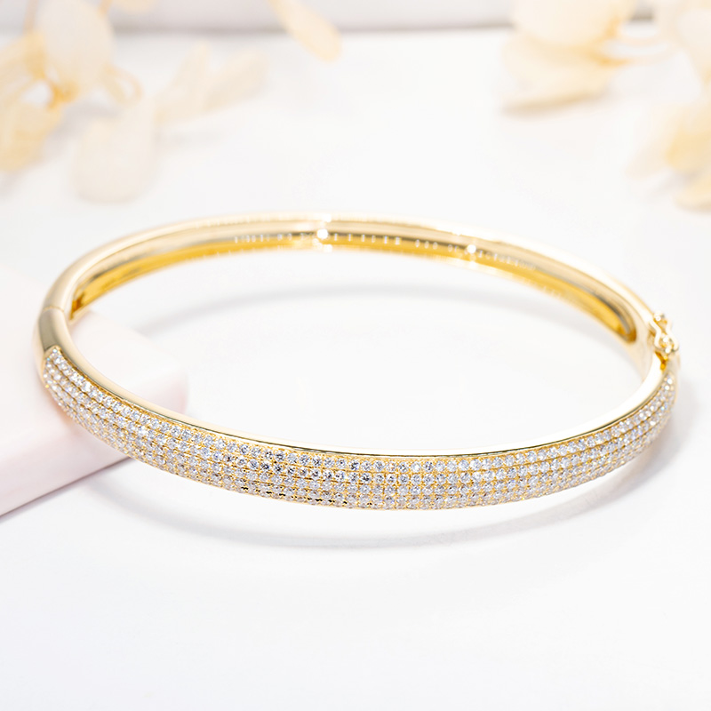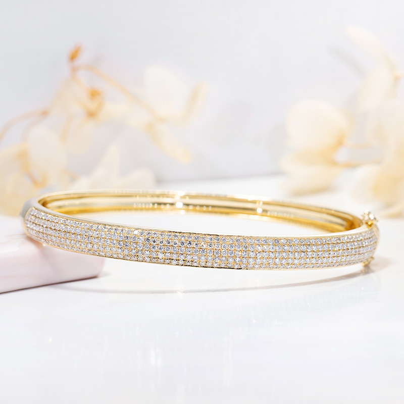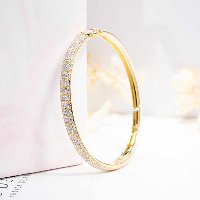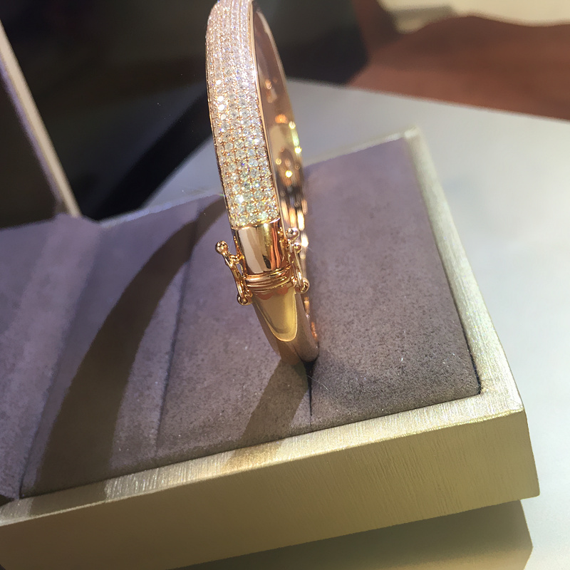 18K金钻石手镯女镶钻满钻玫瑰白金铂金彩金冷淡风情侣正品定制5排