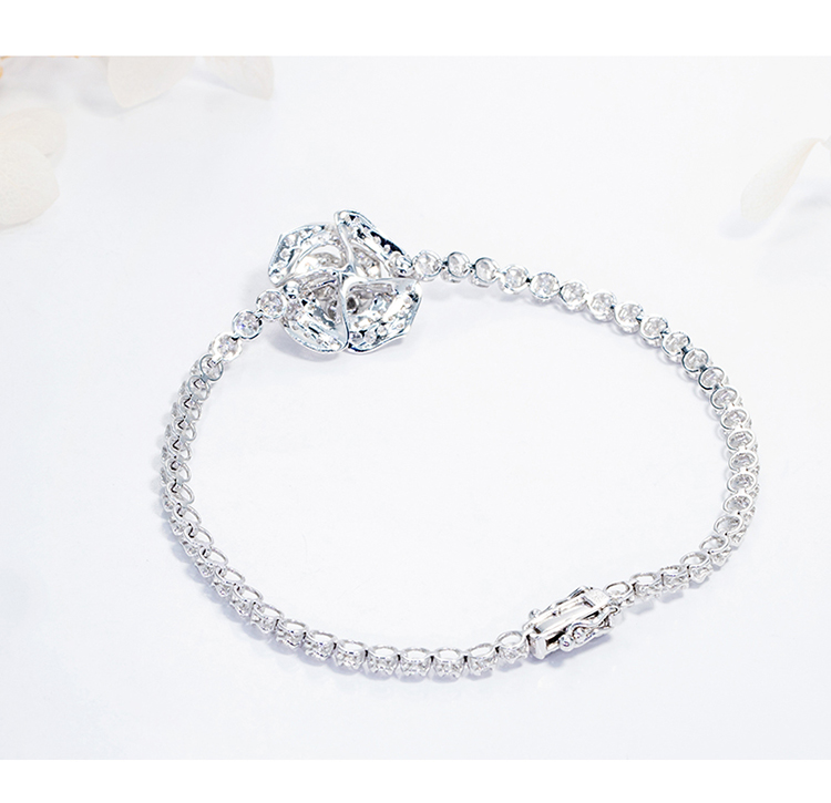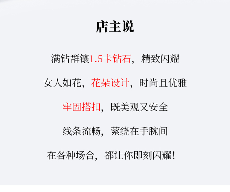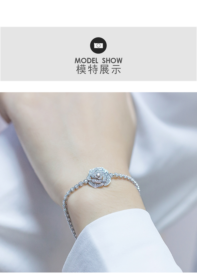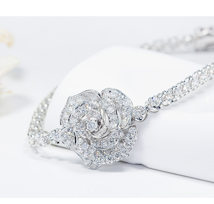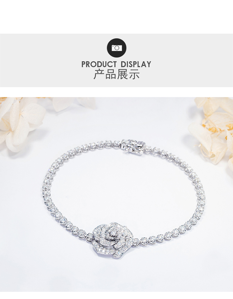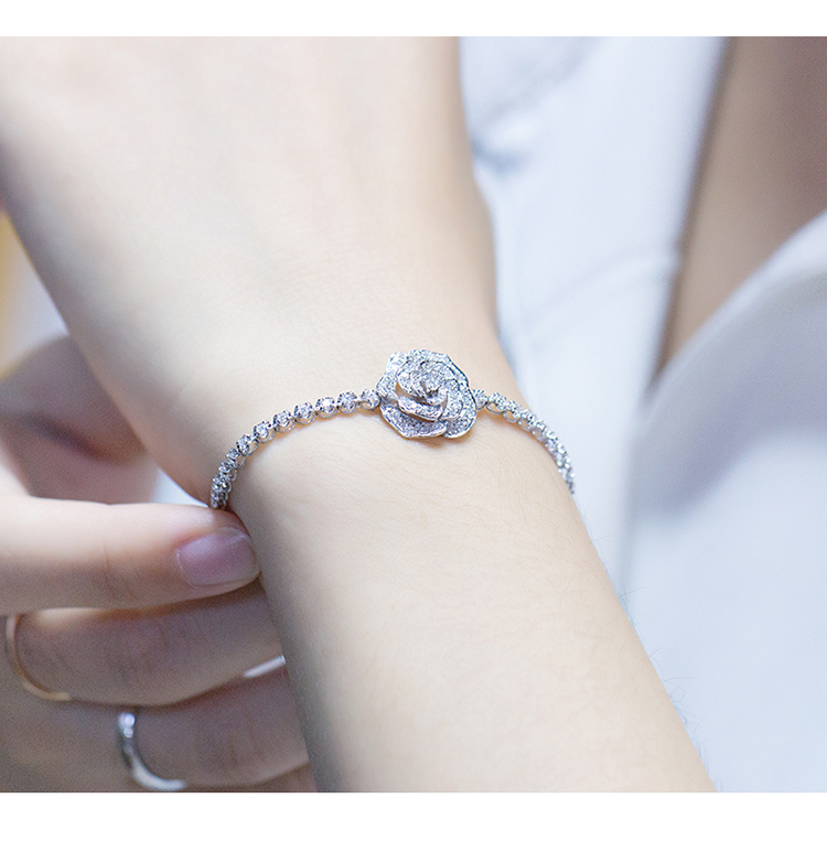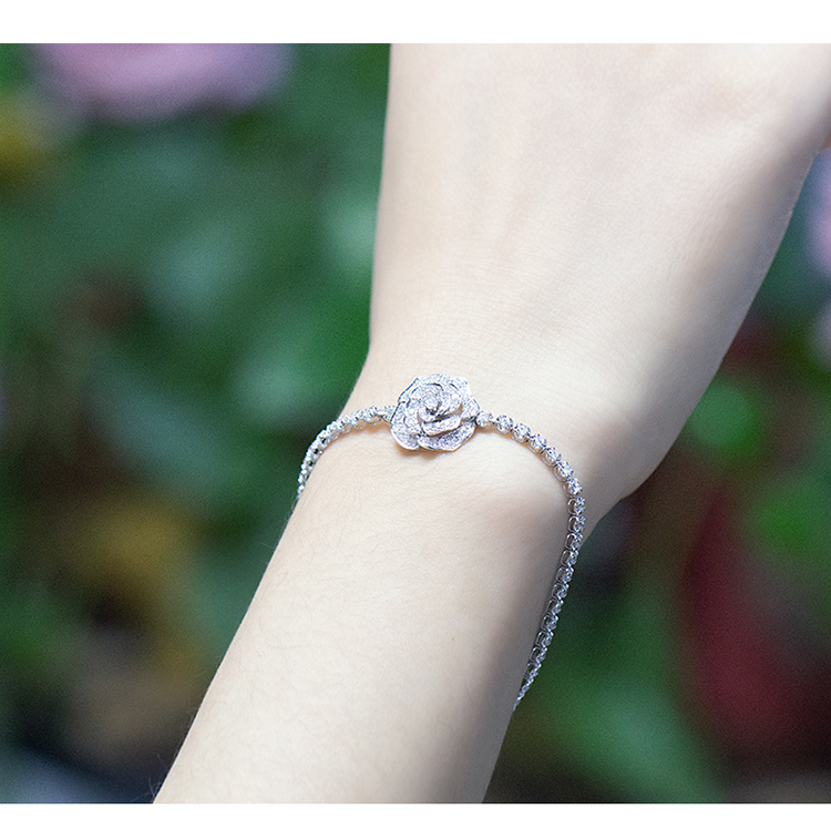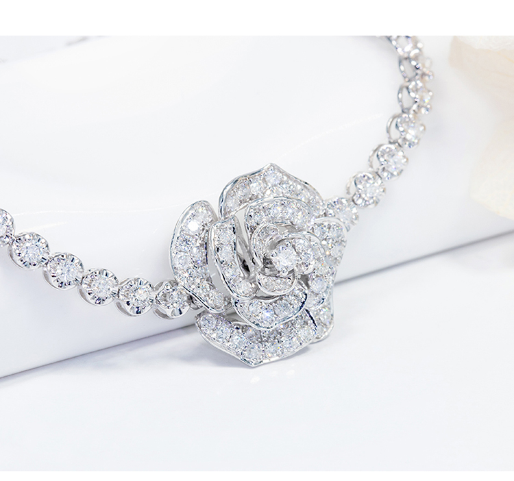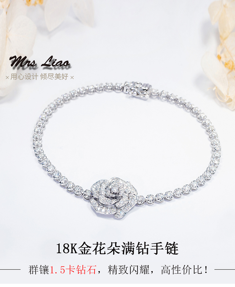 廖夫人珠宝18k白金玫瑰花克拉钻石手链女满钻au750彩金真钻手镯女