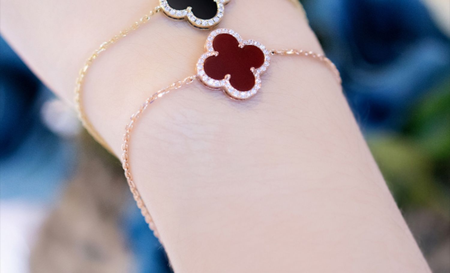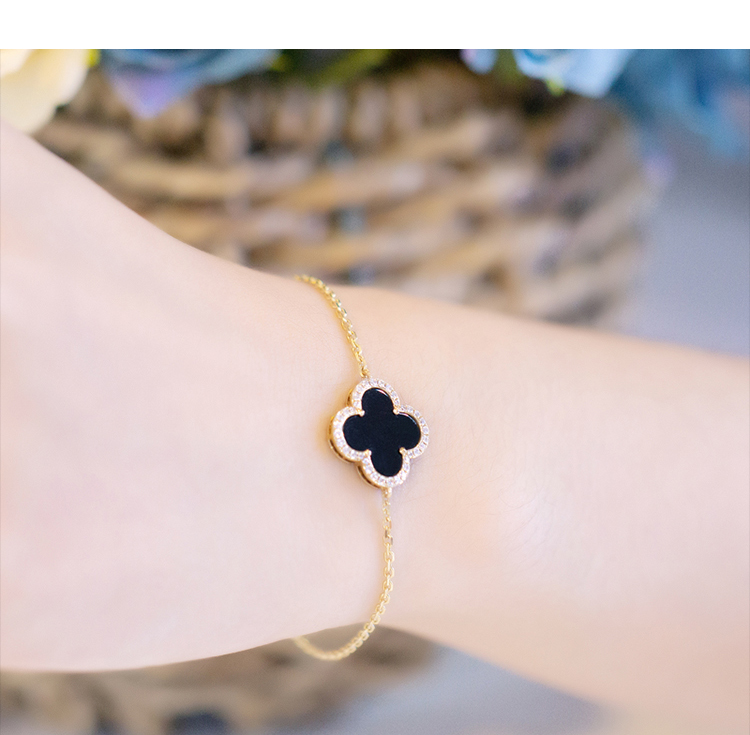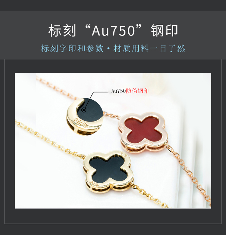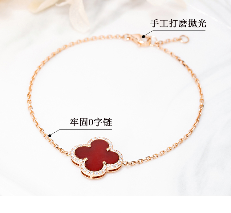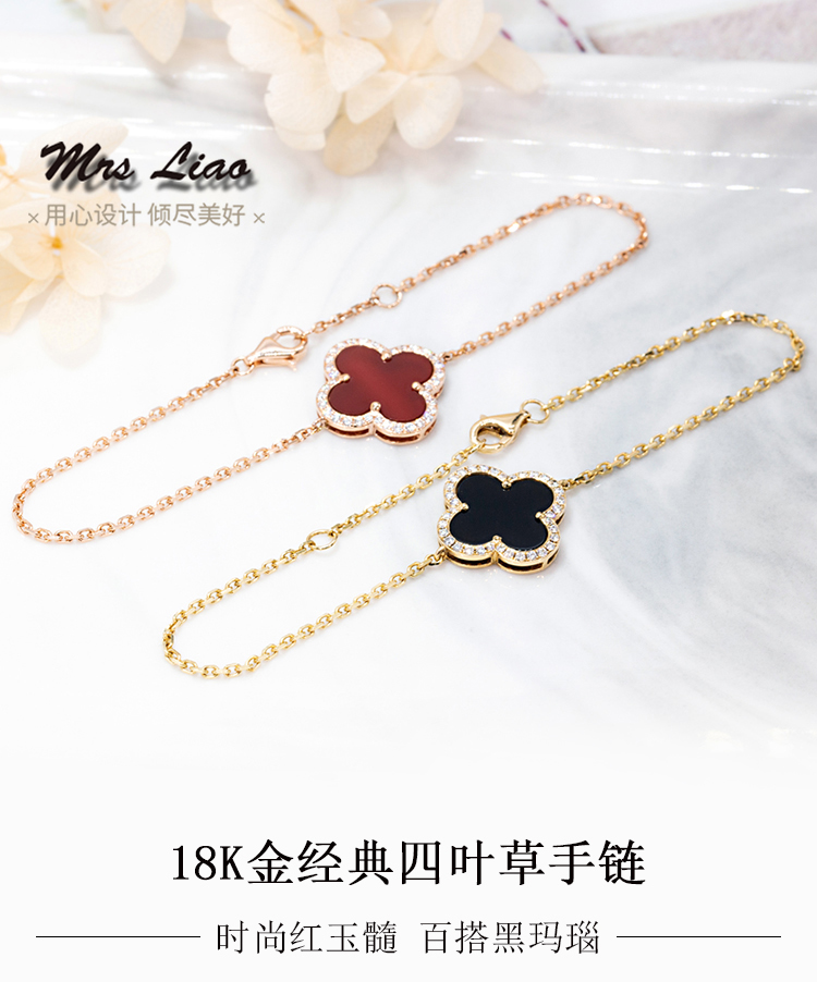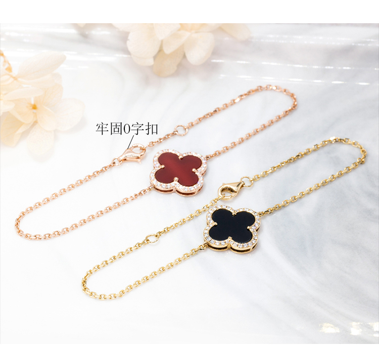 四叶草手链钻石手链手镯女 18k金真钻定制黑玛瑙红玉髓简约单花