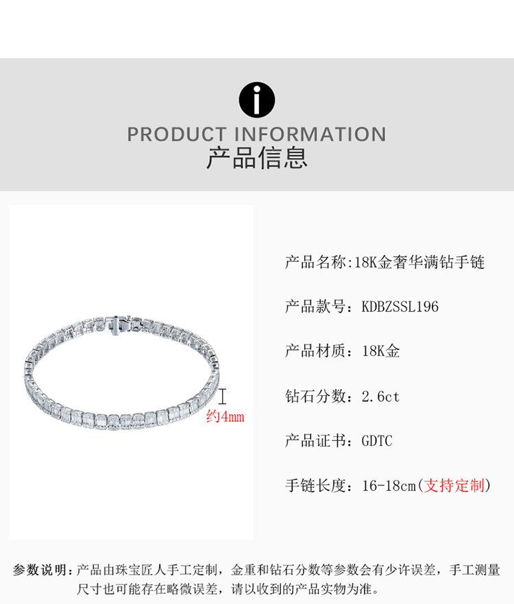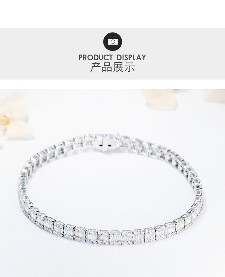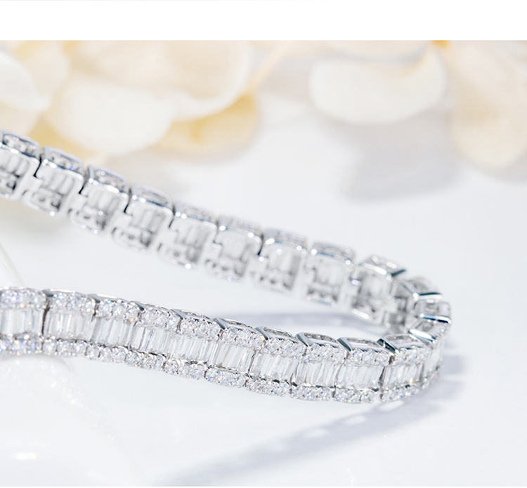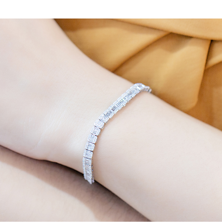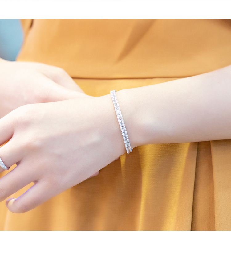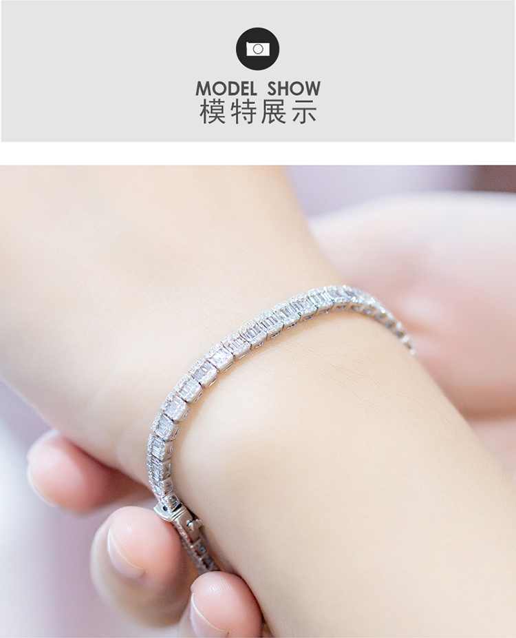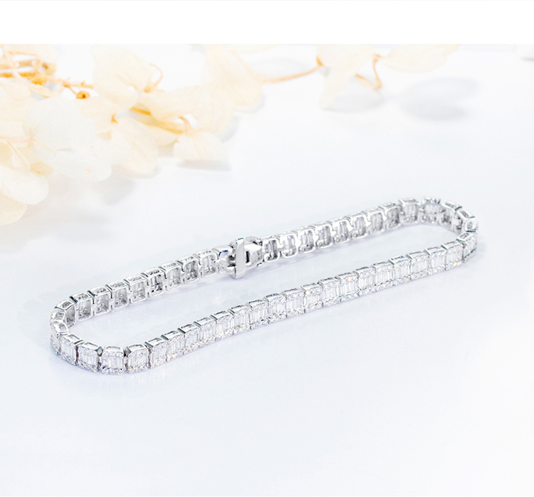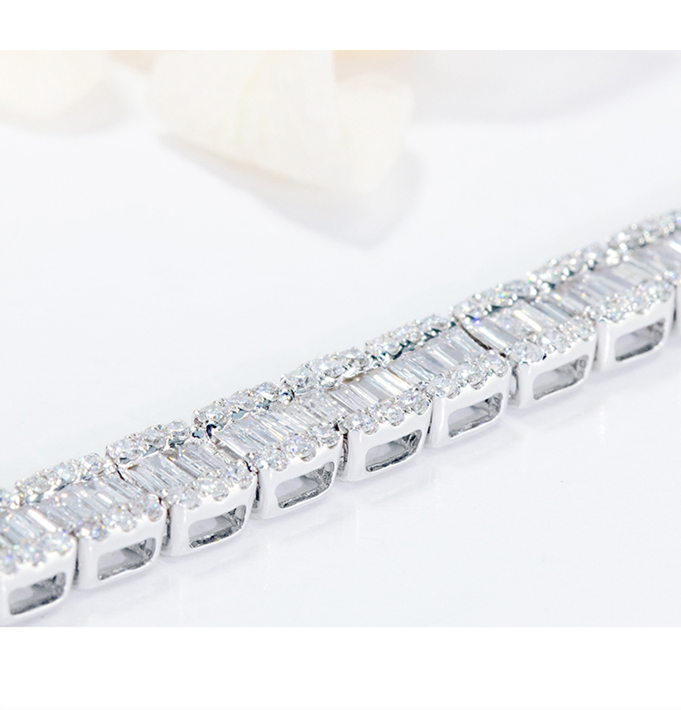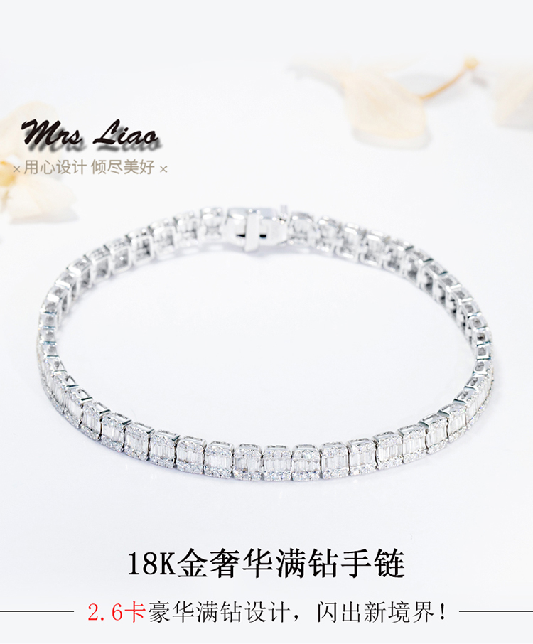 廖夫人珠宝 18K金梯方克拉钻石手链时尚群镶豪华重工打造满钻手饰