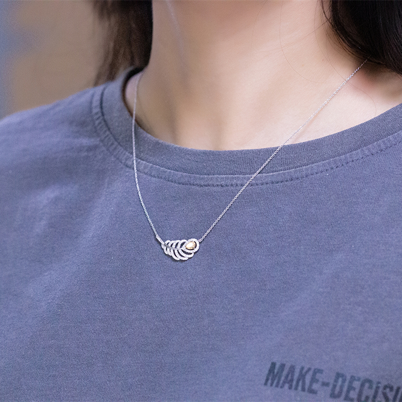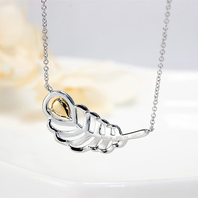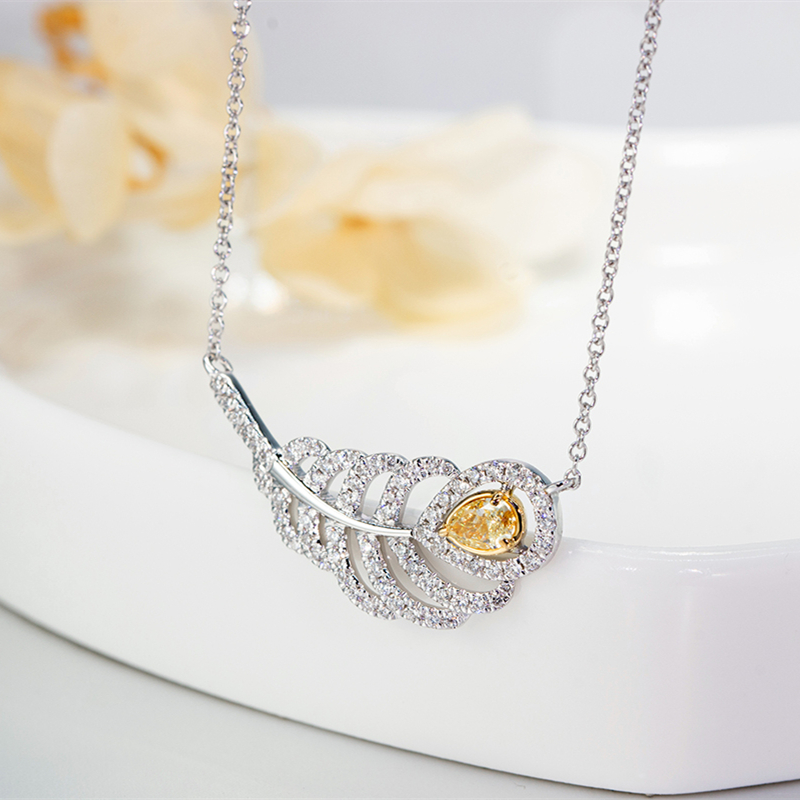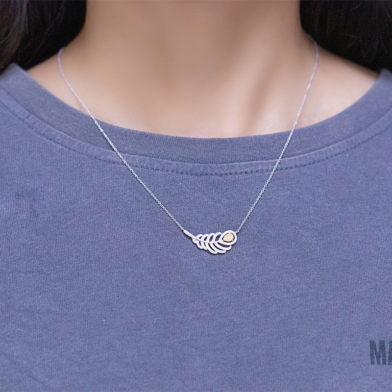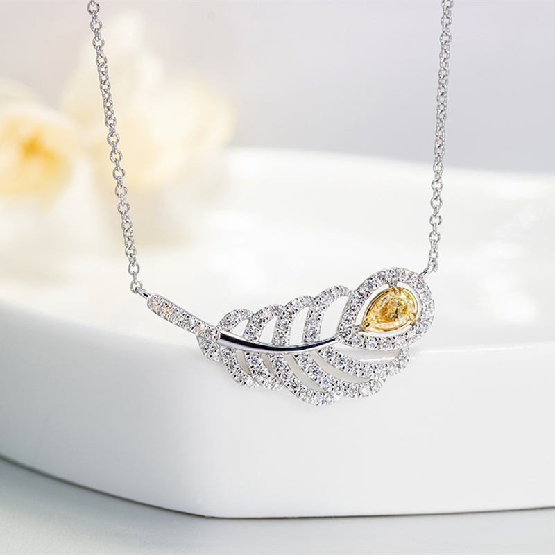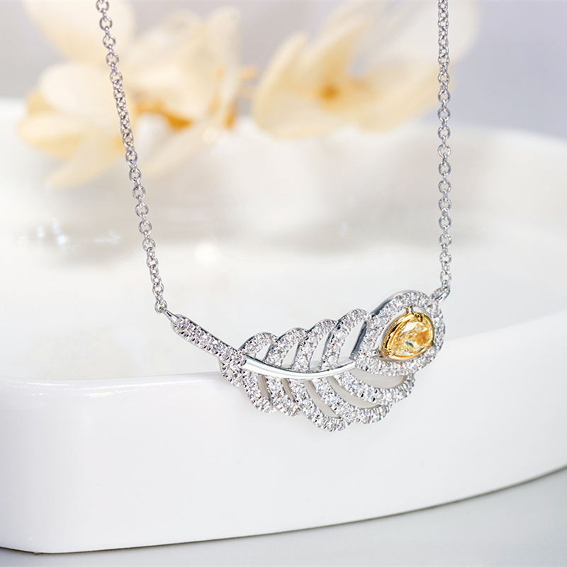 廖夫人珠宝 18K金黄钻项链女天然钻石砖石吊坠羽毛真钻锁骨链定制